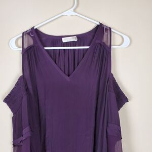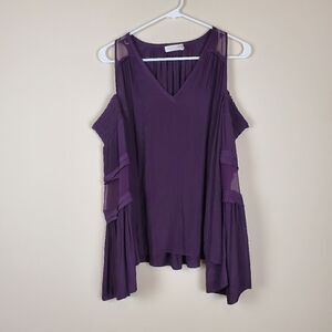 Ramy Brook Purple Faretta Vneck Cold Shoulder Blouse Size Small
