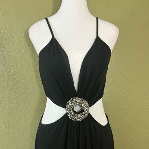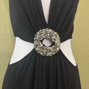 Ramy Brook Women's 8 Rivana Cutout Maxi Dress Black Beaded Buckle High Slit Sexy
