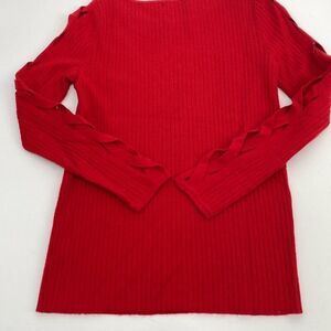 Ramy Brook XS Kimila Pullover Sweater Lattice Criss-Cross Arm Cashmere Blend Red
