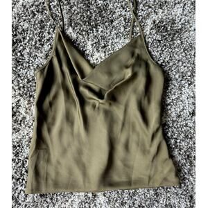 Ramy Brooks NWT Abigail Olive Green Cowl Neck Satin Tank Top Cami size Medium