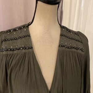 Ramy Brook Olive Green embellished blouse, S