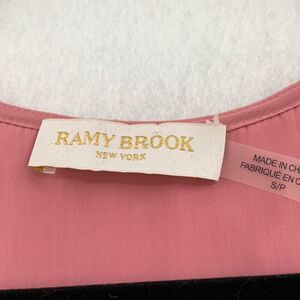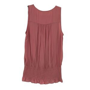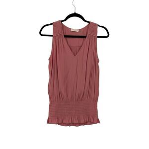 Ramy Brook Rose Sleeveless V-Neck Pleated Smocked Ruffle Hem Top Blouse Small