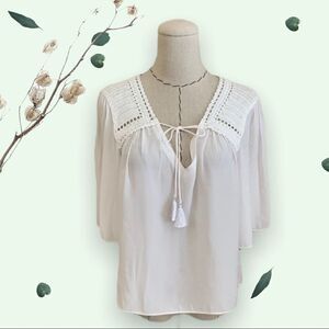 Ramy Brook White Crochet Tassel Ties Top Blouse