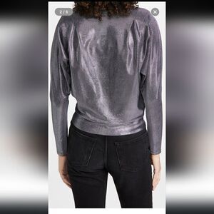 Ramy Brook Esther Silver Metallic Wrap Top Size M