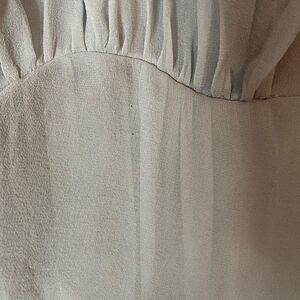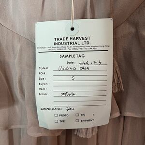 **Important to note** the following flaws/defects have been noted as this is a sample dress: multiple stains noted throughout skirt (pictured as many as I saw, please see above), fine snags, two tiny holes noted from snag to front ruffle (above photo). I have not tried to wash nor treat due to the delicate fabric; however will consider this in sale pricing, as this is being SOLD AS IS. Will likely benefit from dry cleaning and/or steaming again.