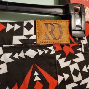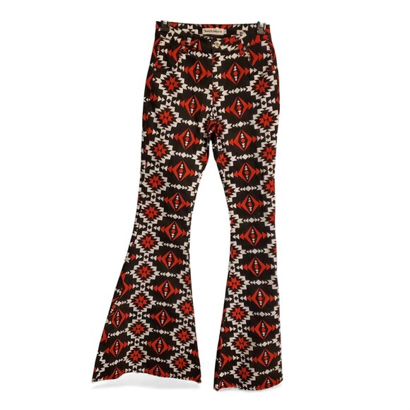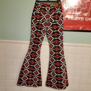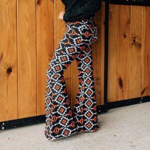 Named after their Spanish roots, the black, white and red Sarita Super Flares will have you feeling like rodeo royalty every time you pull them on. Retro inspired, and a staple of Fallon Taylor, Ranch Dressn's iconic Super Flares are crafted with a cotton/spandex blend allowing for superior comfort and movement. The flattering high-rise shows-off your waist while the body contouring stretch flatters your shape. Whether at the arena or date night, the bold Super Flare pant pairs perfectly with boots or heels. Want to wear them with your favorite street shoe? No problem! The raw hem allows you to customize the length of Super Flares in an instant for a custom fit.