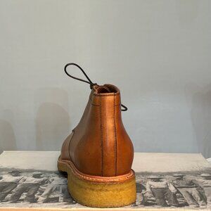 Spanish veg tan leather with full leather lining. Comfort leather insole. 360 leather welt. 12mm plantation crepe sole with plantation crepe stacked heel. Ultimate comfort. never worn.