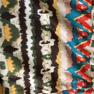 Sz L, slight metallic sheen, fun print, light fabric