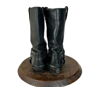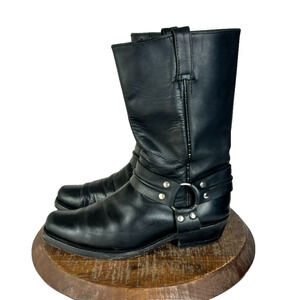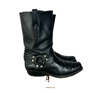 Rancho Viejo Mens 8.5 Black Leather Biker Western Boots Cowboy Style Square Toe