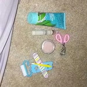 Exfoliator mask... L'Or?al primer ....cuticle pusher... Finger or toe seperater ... Fingernale file ... Scrubby for nails... Eye lash curler .... Blush