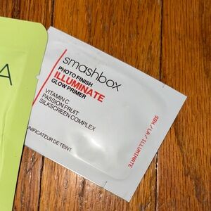 Smashbox primer with vitamin fruit complex. Includes a green hydrating mask.