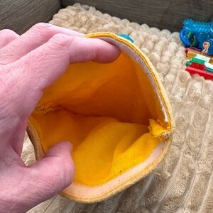 Fun pretzel crinkle bag. (No pretzels) a Kong toy that squeaks and two balls that squeak. Perfect for playful pets. Will be washed and sanitized before shipping. Not really played with at all despite my efforts.