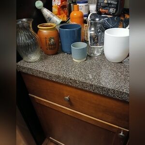 Used flower pots. The white flower pot has a small crack on the side, but there is no sign of leakage at all.