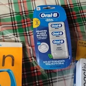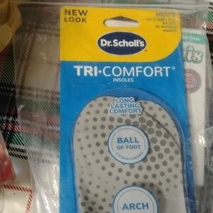 dr schools insoles, oral b floss 3 pack, mini proactive skin care, scrubbing bubbles starter pack of 2 toilet cleaning stamp. grin tongue cleaner. all new