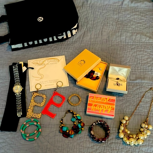 Random junk out of a jewelry box most has not really been used. Putting it all in small Lululemon bag. 13 pieces. Definitely negotiable, spring cleaning.