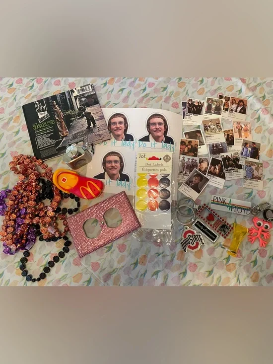 Random Lot! Stickers, keychains. Doors CD, plastic beaded necklaces-