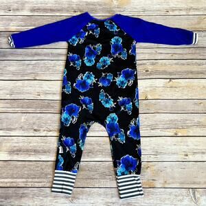 Size 12-18 months, Random Rompers, long sleeve and pants romper. Gorgeous blue and black mixed print romper. Floral print, stripes and solid blue. No stains or flaws, very good used condition.