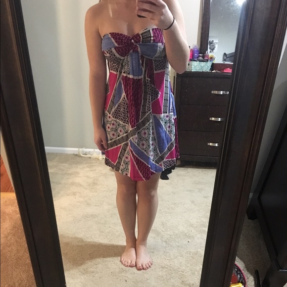 Surprisingly comfortable strapless dress, soft material. Size medium but fits like a small.