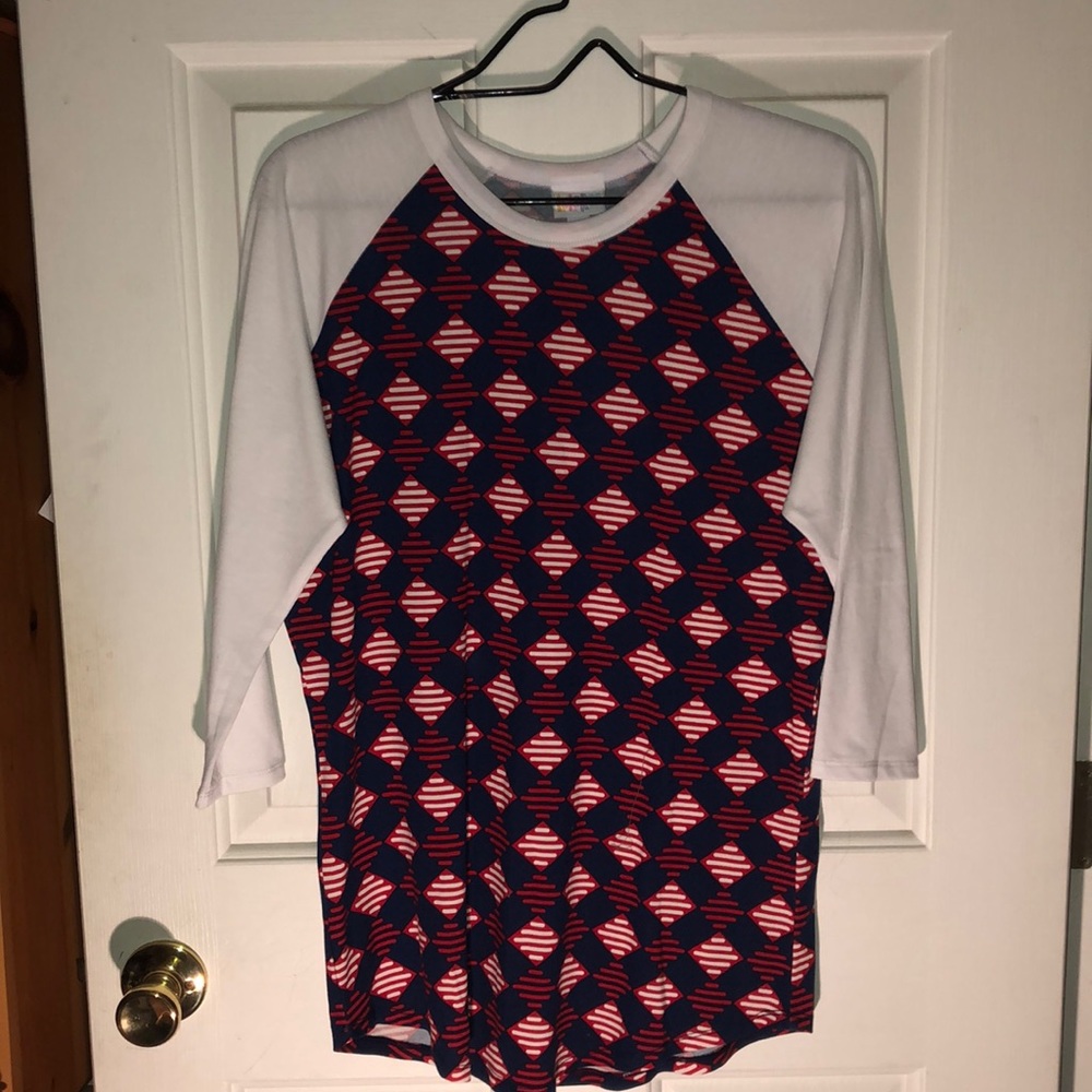 Three-quarter longsleeve Lularoe randy. Red whit and blue.