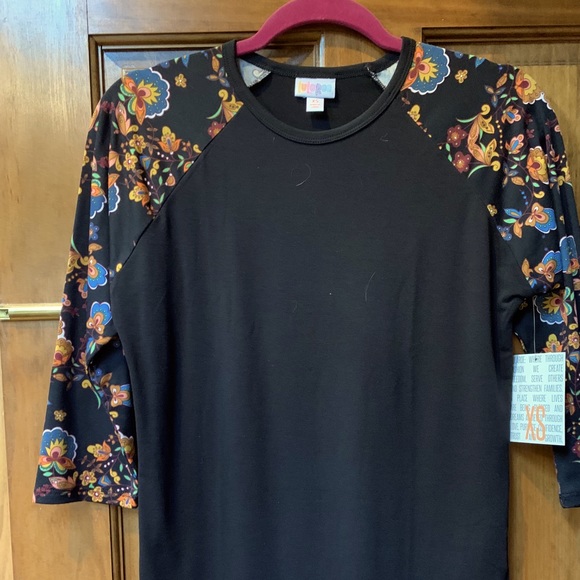 Baseball T, black with floral arms