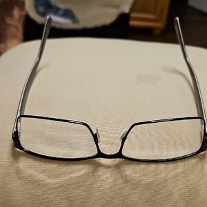 Sleek rectangular glasses with a black frame. Perfect for a modern look. very good used condition and quality.