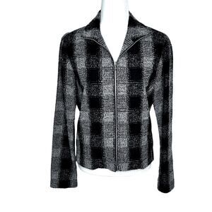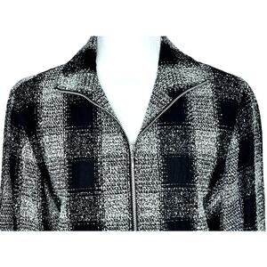 Randy Kemper Black White Plaid Tweed Zip Front Jacket Blazer