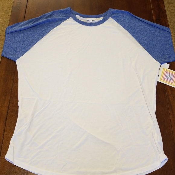 White body/heathered blue sleeve