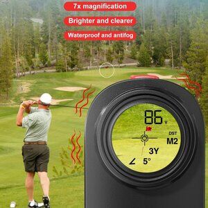 【Unmatched Accuracy & Clarity】This golf range finder measures distances from 3 to 1200 yards with pinpoint precision—accurate within ±0.5 yards. Equipped with a transflective LCD screen and powerful 7x magnification, this rangefinder delivers fast, crystal-clear readings