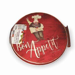 Set of 4 NEW Metal Round Range Kleen Kovers Bon Appetit Chef Decorative Covers