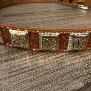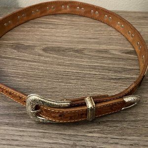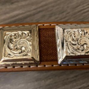 Ranger Belt Company Reddish Brow Silver Medallion Tooled Genuine Leather Belt
