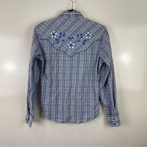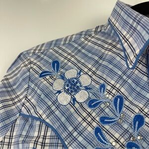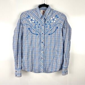 Ranger's Woman Blue Plaid Embroidered Button Front Western Shirt Size Medium