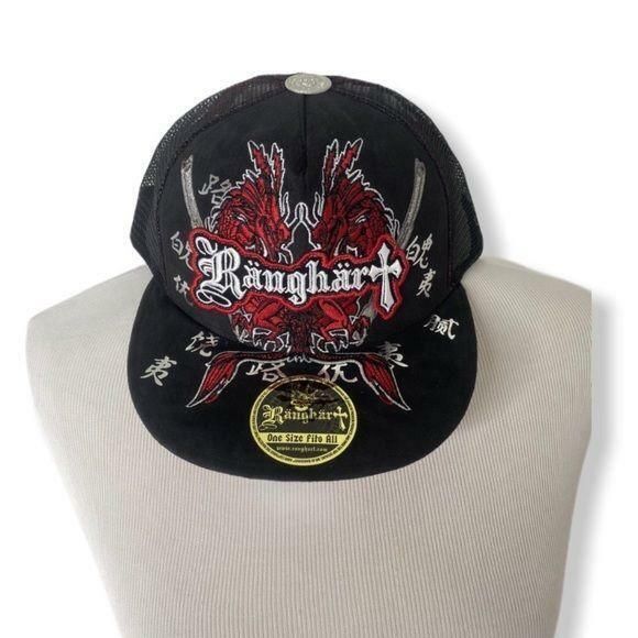 Ranghart Men's Snap Back Hat Black and Red Mesh Back Embroidered One Size