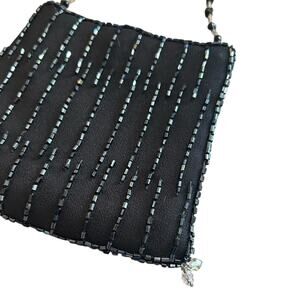 Rangi- Mini Purse- Black with beading, beaded handle, micro purse- prom- y2k
