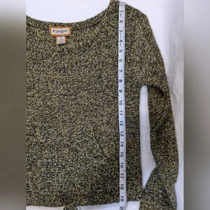 Rangoli pullover wool blend sweater with center pocket, black/ gold,size S