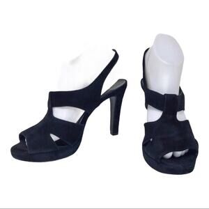 Amalfi Rangoni Black Suede High-Heel Strap Sandals Cutout 7.5W