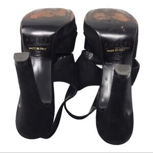 Step out in style with these Amalfi Rangoni black suede high-heel sandals! These sandals are in excellent condition and ready to elevate your wardrobe.