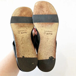 Rangoni Dalma Black Napa Leather Sandals Floral Mini Wedge Women’s Size 7.5 $170