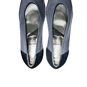 Rangoni Firenze leather and canvas slip on pump navy size 7 1/2 B