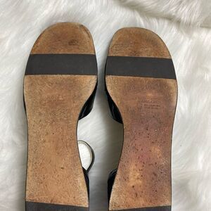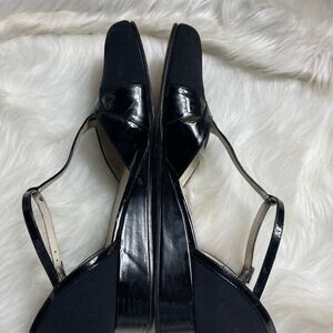 Rangoni black patent leather and nylon ankle T Strap wedge shoes size 10 .pre owned in good used condition a small peeling on the right shoe not noticeable see all pictures any questions please message.B11