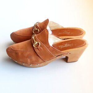 Rangonii of Florence Italian Tan Leather Gold Horse-bit Wooden Clogs / Mules 9