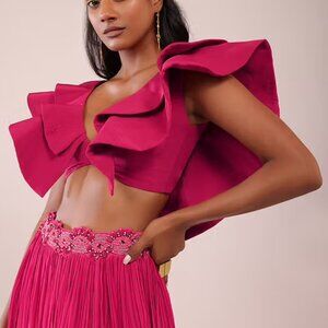 Rani Pink Indo Western Lehenga Choli And Blouse With Embroidered Belt