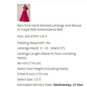 Currently sold out: https://www.kalkifashion.com/rani-pink-hand-worked-lehenga-and-blouse-in-crepe-with-embroidered-belt.html