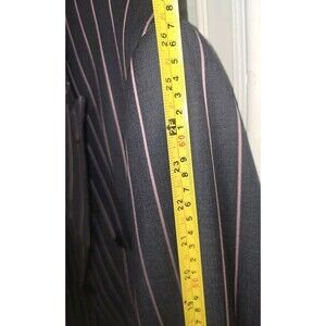 Elevate your style with this Ranieri Uomo blazer, crafted in Italy from luxurious Super 150s wool. The navy base with pink pinstripes offers a refined yet modern look. This is from the Amarone Suit & Vest line (jacket only included) and is in new, unworn condition with the original interior tag still attached.