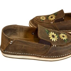 • Design: Slip-on style with moc toe, and sunflower embroidery.