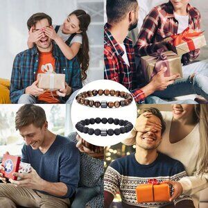 ⚡Rankeef Men 2 Lava Rock Tiger Eye 8MM Natural Stone Crystal Beaded Bracelet
