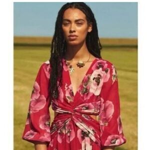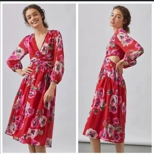 Ranna Gil floral side cuts midi dress NWT