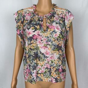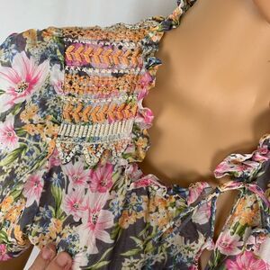 Ranna Gill Anthro Floral Ties Ruffle Blouse Silk S