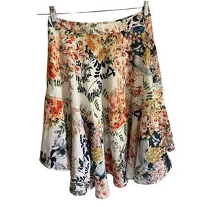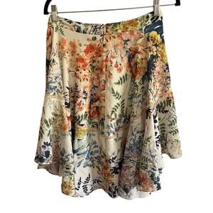 Ranna Gill Jardin Anthropologie Floral Print Cream Flouncy Ruffled Skirt | 6