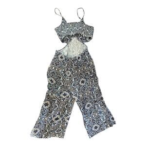 Ranna Gill Tie-Back Cut Out Jumpsuit L Boho Floral Wide Leg Smocked Resortwear