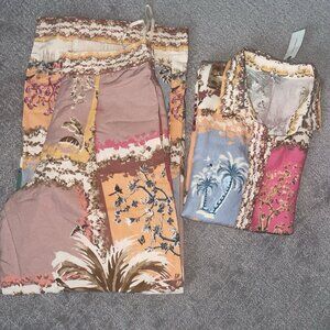 Ranna Gill Tropical Print Linen Blend Collared Blouse Size Small Anthropologie